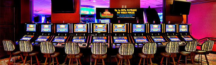 Binion's Gambling Hall offers a great mix of your favorite video and reel slot machines, from the classics to the most current games on the market. If video poker is your game, we offer some of the best video poker pay tables, located in our Video Poker Hideaway, that have over 98% payback return. Play Video Poker at the Front Bar for the newest options for Video Craps, Roulette & Baccarat. We also offer Progressive Video Poker at our West Bar and Video Keno & 8/5 Video Poker at Benny's Smokin' BBQ & Brews Bar.